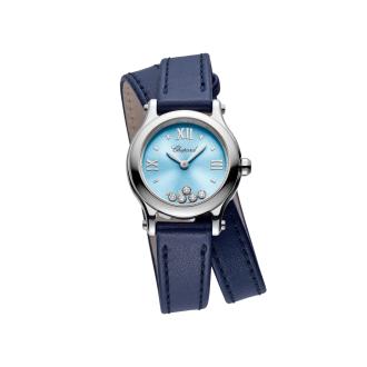 Ref. 278608-6002 - Die Happy Sport-Kollektion ist das Sinnbild für die Kreativität und Stärke von Chopard. Ihre verspielten, frei wirbelnden Diamanten tanzen zwischen zwei Saphirgläsern und fangen seit 1993 die Vorstellungskraft ein, als Chopard das das erste Unternehmen war, das Edelstahl und Diamanten kombinierte. Dank seiner Uhrmacherkompetenz konnte Chopard die Happy Sport 33 mm mit einem mechanischen Uhrwerk mit Automatikaufzug ausstatten, das speziell für Gehäuse von Damenuhren entwickelt wurde. Little Diamonds Do Great Things