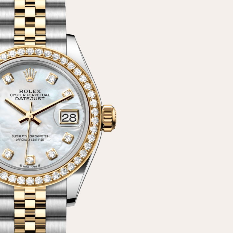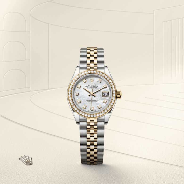 Rolex Lady-Datejust Oyster, 28 mm, Edelstahl Oystersteel und Gelbgold mit Diamanten M279383RBR‑0019